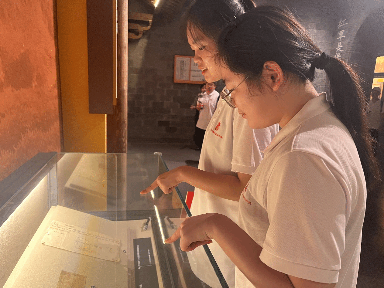 在红军后代曹祥增老先生的带领下,实践队一行深入承载着厚重历史的西南五乡农民武装暴动指挥部旧址——曹氏家庙,以及长征出发前英勇集结的标志性地点鸡爪梨树。曹老说,曾任苏区干部的父亲亲笔书写的回忆录便是他的传家宝,他坚持口口相传,代代传承,红色精神深深根植,他的孩子成为现役部队干部,驻守祖国边疆几十载。听完曹老的讲述后,队员们更加坚定继承革命传统、赓续红色血脉的信念,让红色精神从符号、理念,变成我们身边鲜活的日常,成为走好新时代长征路的传家宝。