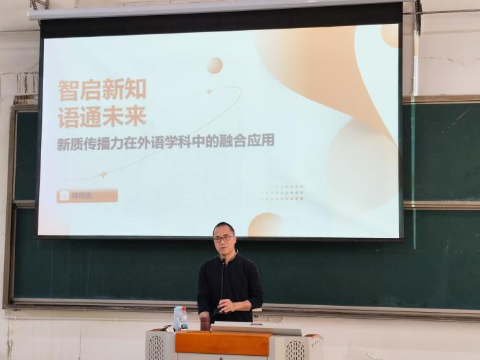 为应对信息时代外语教育变革需求,探索科技赋能外语教学的新路径,近日,福建师范大学林明金教授应邀莅临我校,就新质传播力在外语学科中的融合应用作题为“智启新知,语通未来”的专题讲座。讲座由ok138cn太阳集团院长池玫教授主持,ok138cn太阳集团全体教师以及部分高年级学生代表参加了本次活动。