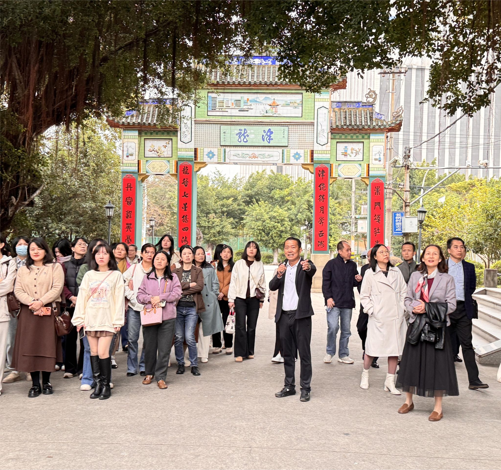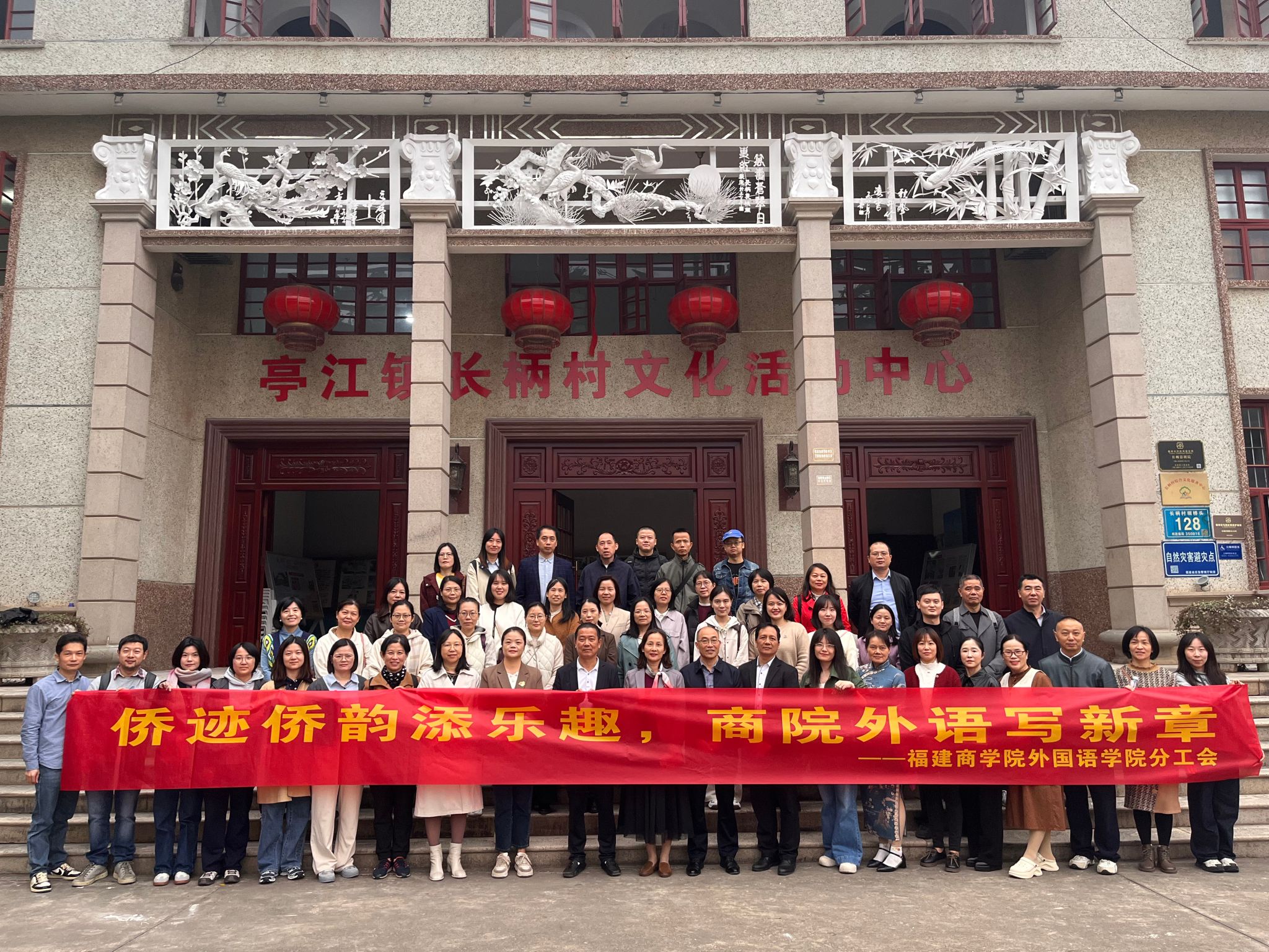 惠风和畅,秋高气爽,11月18日,我院分工会组织老师们前往著名侨乡长柄村,开展“侨迹侨韵添乐趣,商院外语写新章”主题活动。长柄村党支部书记、村委会主任杨人渠亲自担任讲解,沿着村主干道,带领大家在侨乡文化的浸润中汇聚欢声笑语。