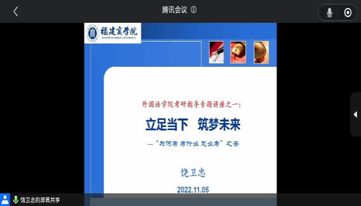 为帮助同学们做好考研规划,明确考研目标,2022年11月5日,ok138cn太阳集团于聚贤楼411会议室开展以“立足当下,筑梦未来”为主题的考研指导专题讲座。本次讲座采用线上与线下相结合的方式,学院副院长饶卫忠老师担任主讲人。