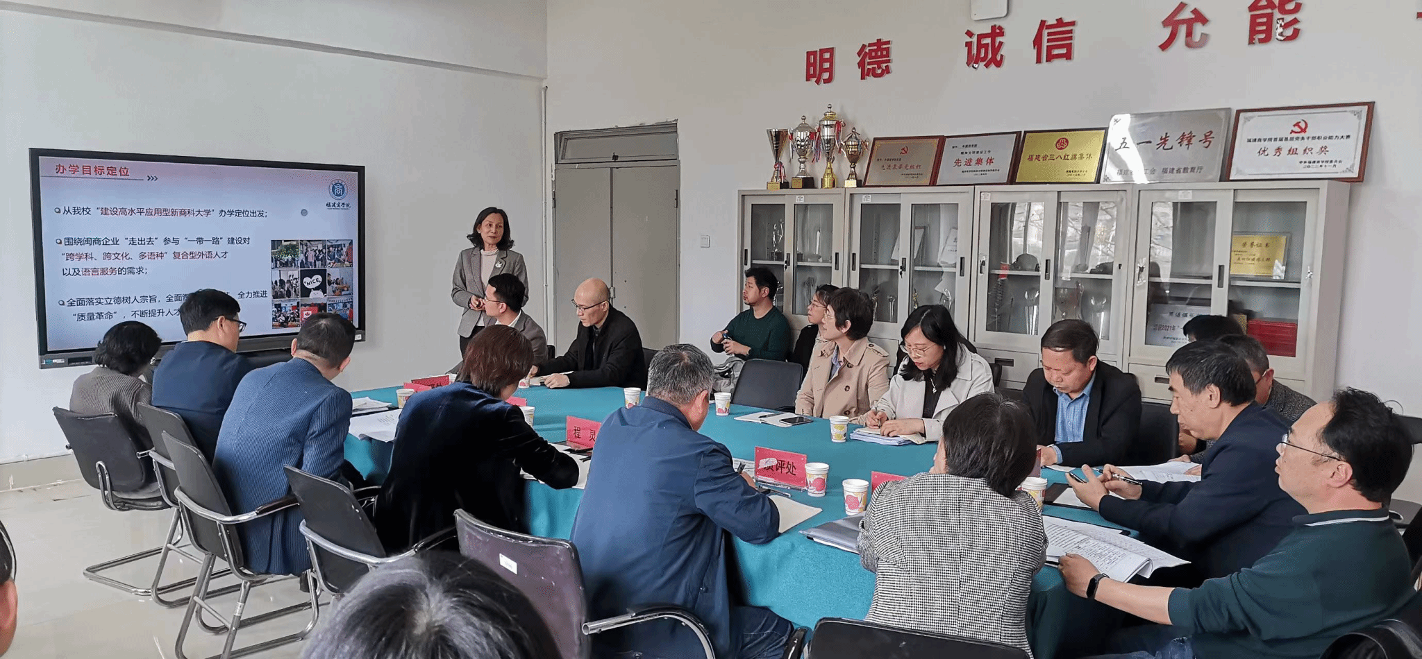 座谈会上,程灵校长肯定了学院在合格评估准备工作中取得的成绩,同时也指出学院特色凝练方面存在的不足,强调学院工作要打造“语言+商贸”特色,并展示ok138cn太阳集团如何服务全校外向型经贸人才培养,提升整个学校的外语学习氛围,加强以评促建、以评促改,迎难而上为深化学院高质量发展打下坚实基础。