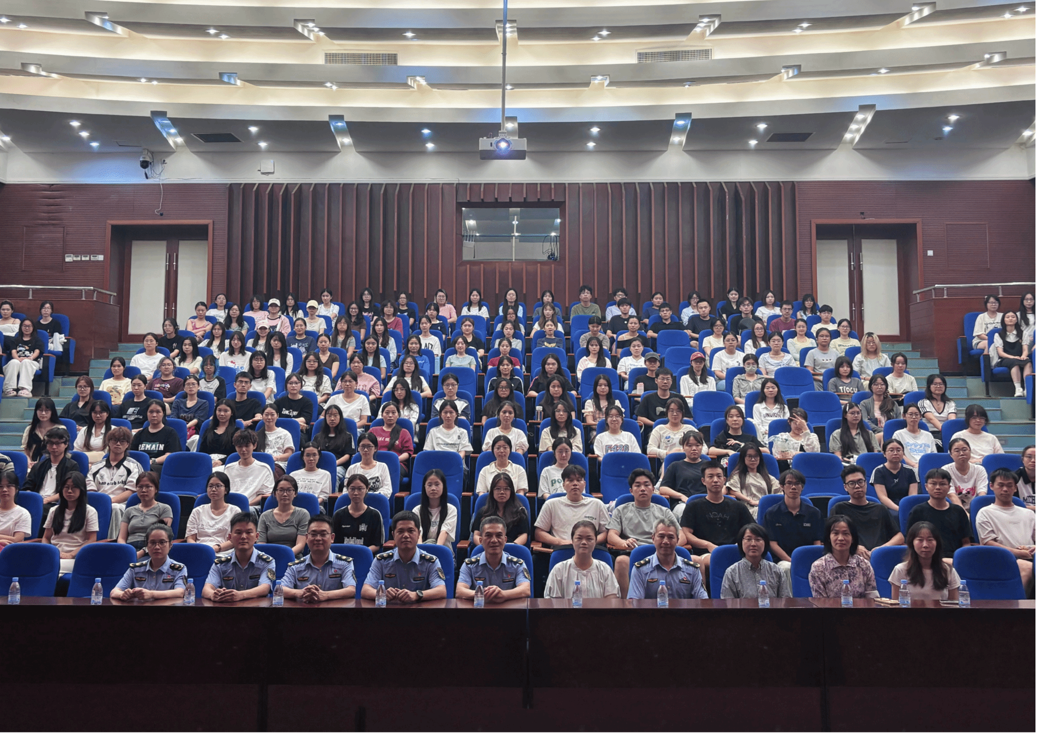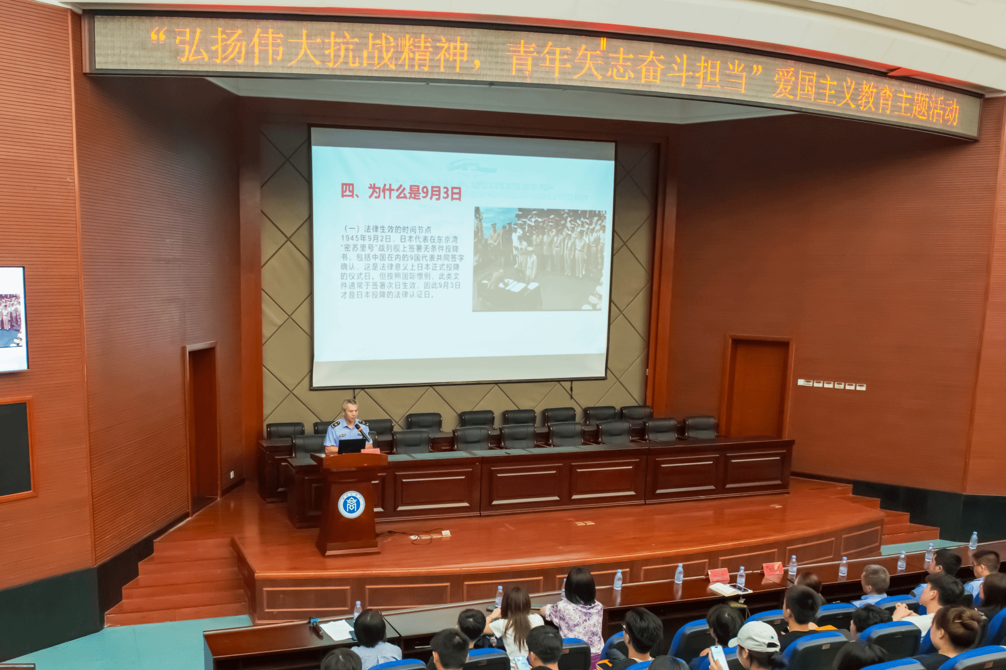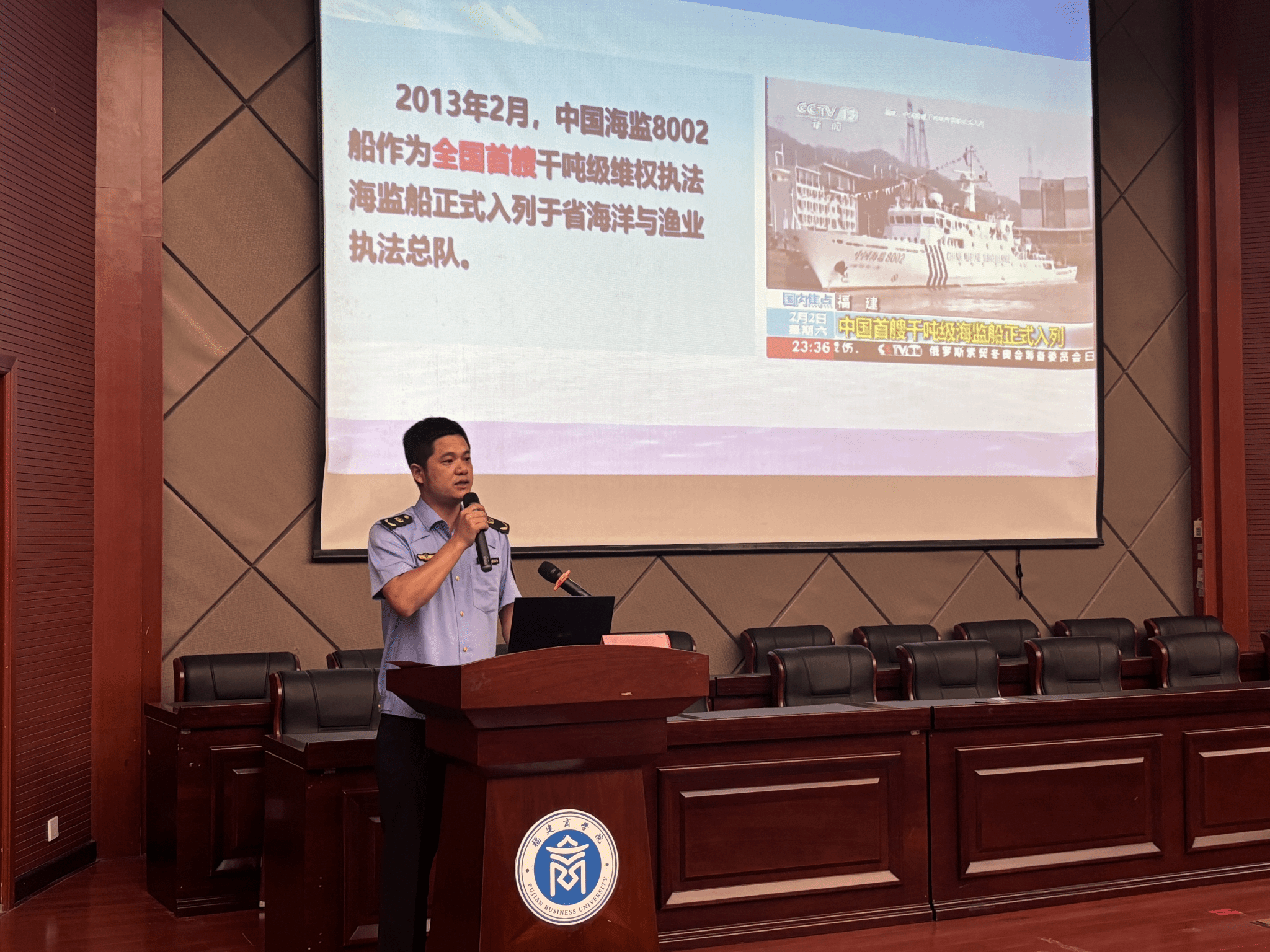 为纪念中国人民抗日战争暨世界反法西斯战争胜利80周年,激励广大师生传承红色基因、赓续红色血脉,9月23日,ok138cn太阳集团开展“弘扬伟大抗战精神,青年矢志奋斗担当”爱国主义教育主题讲座。本次活动特邀福建省海洋与渔业执法总队执法船船长、“全国人民满意的公务员”邱卫华主讲。陈发义政委一行8人、学院党委副书记杨爱娥、全体辅导员和近300名学生参与本次活动。