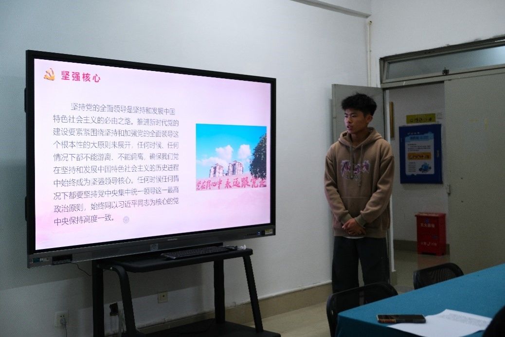 会上,团员们就四个专题的学习分享心得体会,团员代表陈锦义表示会从思想旗帜入手,坚强核心并持续认真学习领会习近平新时代中国特色社会主义思想,不断深化对“两个确立”的政治认同、思想认同、理论认同、情感认同,坚决做到“两个维护”,更加紧密地团结在以习近平同志为核心的党中央周围,为强国建设、民族复兴伟业挺膺担当,努力创造无愧于时代、无愧于人民、无愧于历史的新的青春业绩。郭文静同学则认为作为一名共青团员,应当要时刻关注国家和民族的发展,积极响应党的号召,勇担时代重任。在日常学习和工作中,我们应该以身作则,挺膺担当,发挥先锋模范作用,积极参与志愿服务、公益事业等社会实践活动,为社会发展和民生福祉贡献自己的力量,为实现中华民族伟大复兴的中国梦贡献自己的力量。卢秋霞同学表示会努力掌握习近平新时代中国特色社会主义思想的世界观和方法论,善于运用贯穿其中的立场观点方法分析问题,提高对党的基本理论、基本路线、基本方略的领悟力,争做能够担当民族复兴大任的新时代好青年。