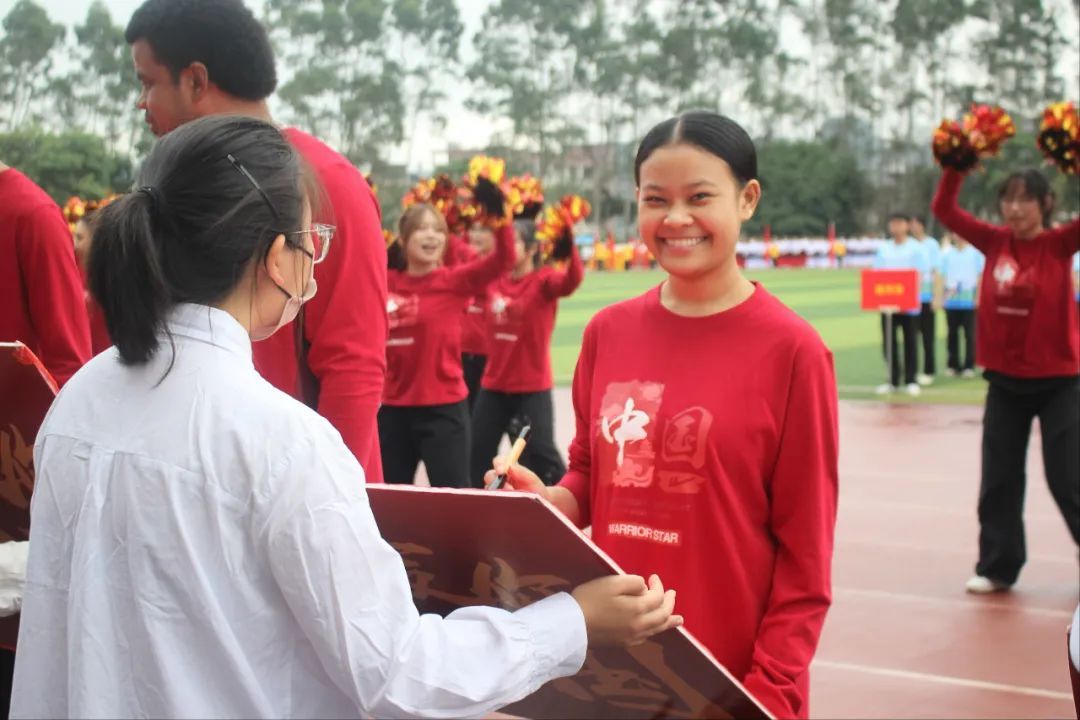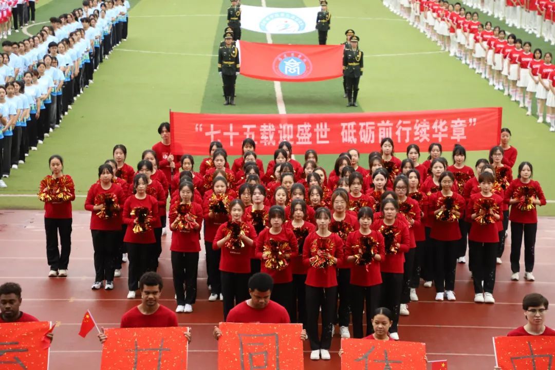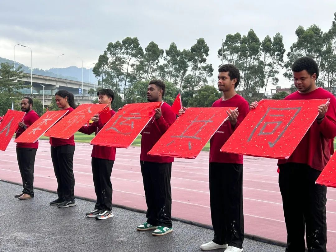 ok138cn太阳集团代表队带着蓬勃朝气与昂扬锐气,刚劲稳健地踏步入场,他们用语言架桥,以文化传情,与来自乌兹别克斯坦,老挝,新几内亚岛,萨摩亚,基里巴斯,斐济,所罗门群岛的九名留学生携手前行。他们以活力与热情诠释运动魅力,以喜悦与深情庆祝祖国生日,共同演绎歌曲《美丽中国》,用青年学子舞动青春的热情与生机为伟大祖国75周年华诞献礼。留学生们热情洋溢,手执毛笔,书写“人类命运共同体”,更彰显了中国与世界共绘一幅幅多元对话的人文交流图景的坚定承诺。