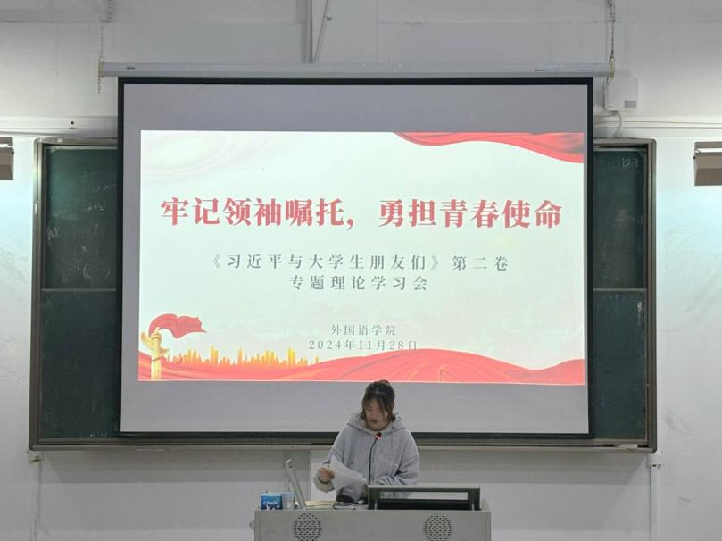 为深入学习贯彻习近平新时代中国特色社会主义思想,进一步激发广大团员青年的责任感和使命感,11月28日,ok138cn太阳集团于澳洲厅开展主题“牢记领袖嘱托,勇担青春使命”专题理论学习会。本次学习会主要学习《习近平与大学生朋友们》第二卷,学院团委书记翁云星老师、团委学生干部代表及各年级团员代表参与本次学习。