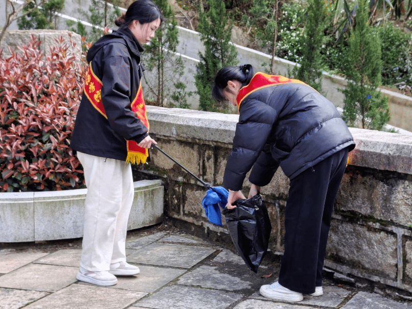 缅怀仪式过后,师生们对陵园内的落叶、杂草和路面进行了全面清扫。春阳下,一抹抹忙碌的身影与苍松翠柏交相辉映,彰显了新时代青年继承先烈遗志、永葆忠诚本色的坚定信念。