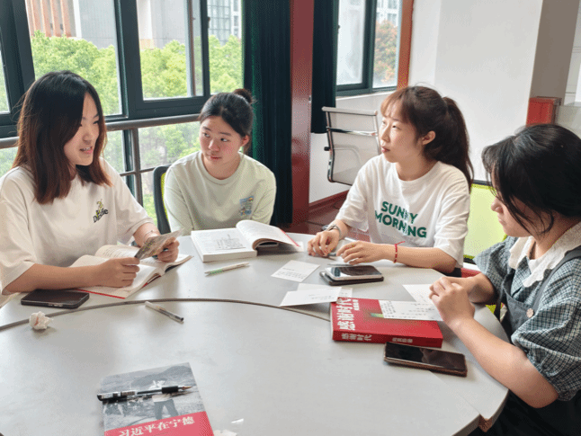 同学们分组研读《习近平在福州》和《感谢时代》两本书,深切理解“我们党没有自己特殊的利益,党在任何时候都把群众利益放在第一位”这句话的分量,并结合自身经历,分享如何在阅读中拓宽视野、丰富思维、塑造价值观,在精细研中感受原著的语言魅力与思想魅力,在思想碰撞中获得新启发。辅导员刘思怡在讲话中表示,同学们要养成阅读经典著作的习惯,明白在大学时期要刻苦学习,苦练技能,感恩生逢伟大时代,力求成长成才。