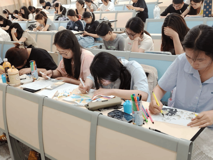 参赛选手们从《西游记》《鲁滨逊漂流记》等25本经典文学作品中选择一本进行封面设计。同学们专注投入,结合自身对文学作品的理解,发挥奇思妙想,扣紧主题,兼顾与书籍的契合度和视觉上的美感,运用大胆的色彩搭配与细腻的笔触在设计中诠释自己对书籍的深刻感悟。现场评审从创意性、主题契合度、色彩搭配、构图新颖等维度对参赛作品进行评选,最终选出八份优秀作品。这些作品风格各异,有的用独特的视觉效果展现书籍的奇幻世界,有的用简洁却富有深意的构图诠释书籍内涵,吸引了众多同学围观欣赏。